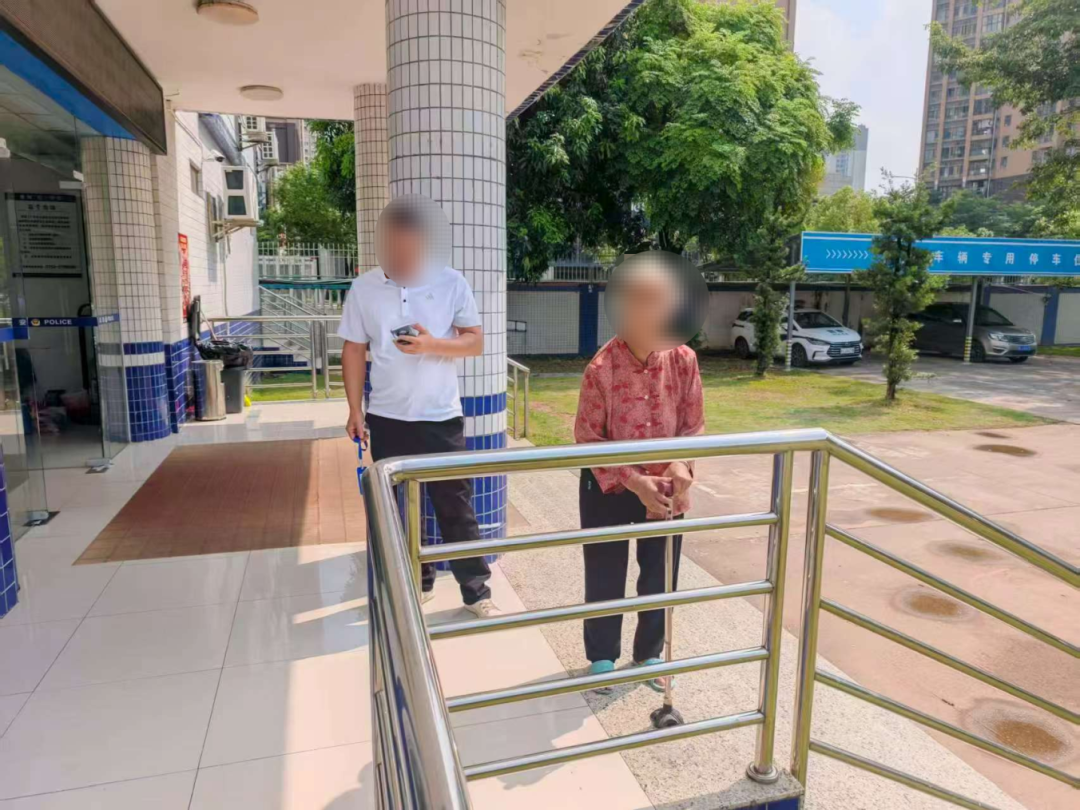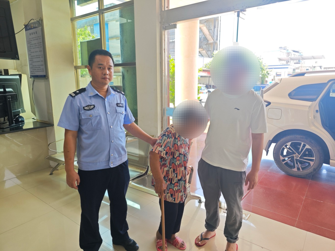 在派出所,民警通过智慧新警务平台,成功联系到了老人的亲属,得知信息后,其儿子立即赶到派出所,并对执勤民辅警连声道谢。