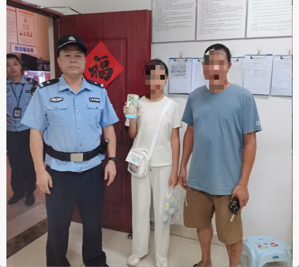 原来,该名女生在购买商品后,不慎将手机遗落在商场收银台上。手机失而复得,她与家人向出警人员再三道谢。
